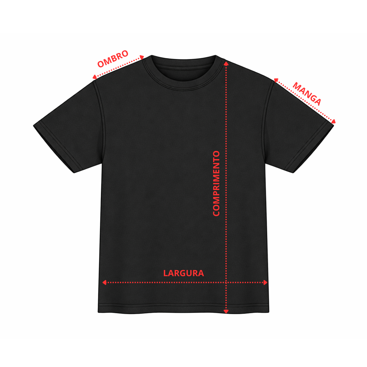 Costuras reforçadas na gola, ombros e mangas. Gola de 3cm que não esgarça.